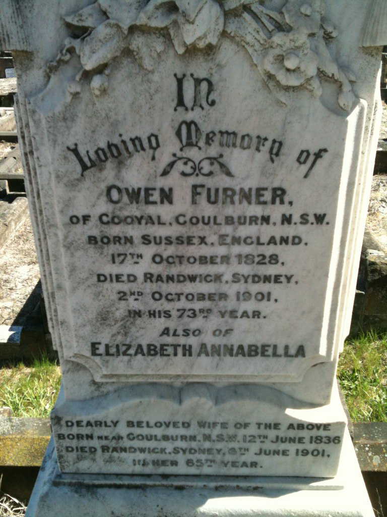 So circling back to the beginning of this post, in 1857 a year after her father’s death, Elizabeth is 21 and she marries Owen Furner, the widower with two young children. They go on to have seven more children. One of those is June’s grandfather, George Arthur Furner. Elizabeth seems to become an integral part of Goulburn life. Her husband runs the auction house and her siblings remain and thrive in the area.