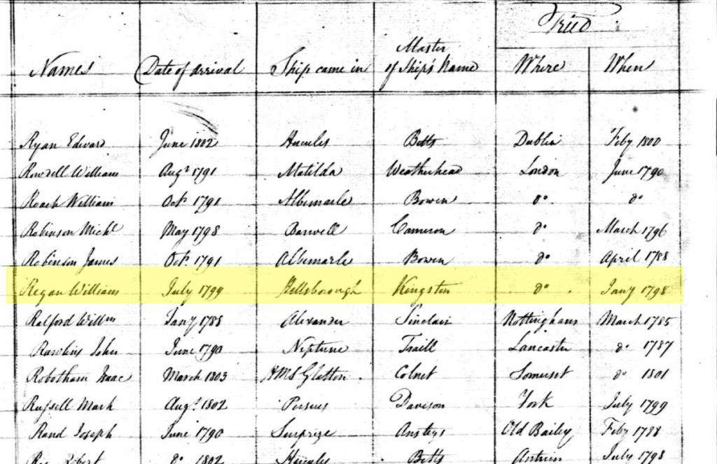 They have a son, John in 1810 and their daughter Margaret Regan is born in 1815. Convicts had to get permission to marry but I have not found the Regan/Kavanagh record yet. In the 1828 Census there is record of William Regan and his son John both working for a “Bradley” in the Goulburn plain. William is listed as a carpenter.