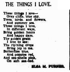 Mary: I’m putting a link to a site where Elaine found a poem posted by one Elsa May Furner in April 1931, do you think that was your mother?