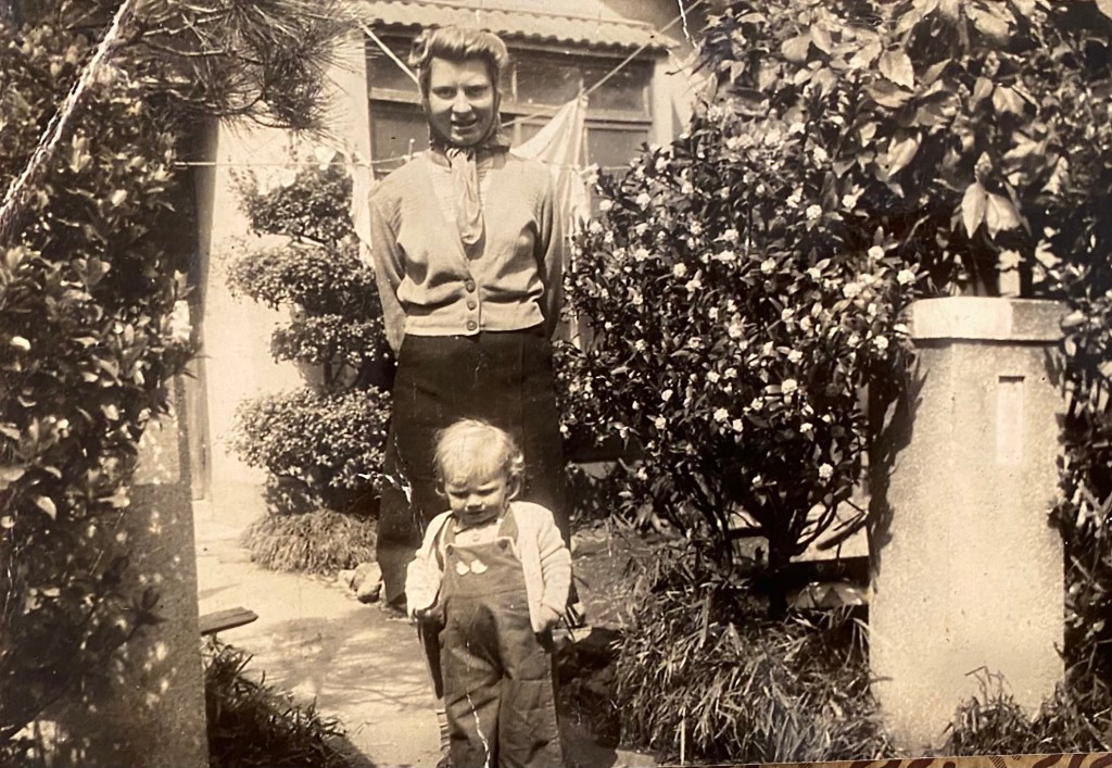 One day we learned that a commercial plane was flying from the Air Force base in Iwakuni. We contacted our Bank in Tokyo and found we had just enough money to pay the fare. June decided to go. The three of us travelled up the inland sea. On the morning of June’s departure while June checked her luggage and passport, I took Stan quickly to buy some milk for his breakfast. I had trouble finding a store open at that hour and realized it was getting close to her departure time and rushed back to the airport. The plane was taxiing out onto the runway. I saw someone at a window wave so holding Stan in one arm, I waved as the old propeller plane roared into the sky. The whole land was filled with a strange silence while we watched the black mark in the sky fade away. Then we slowly picked up our things and made our way back to the lonely little house on “Green Hill” (Midorigaoka) outside Beppu.