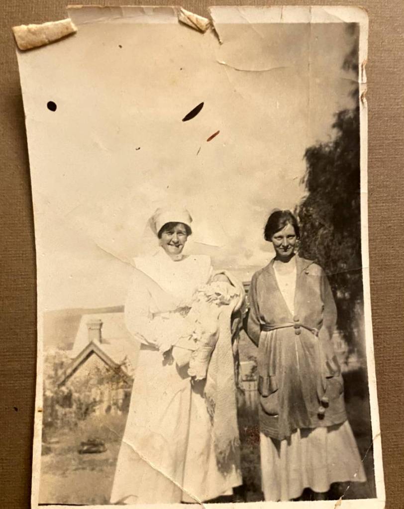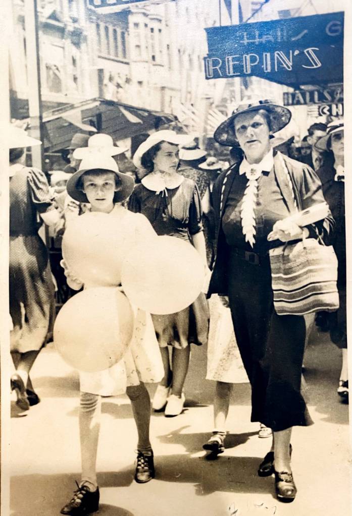 I must have flipped past this picture a dozen times without really examining it. One day I realized there was a little bit of writing in the lower right corner, and it said “Feb 1938”. Suddenly I was looking at this with fresh eyes. Oh my goodness! That is an eleven-year-old June Furner holding those balloons! I am pretty sure that is her mother. At first, I wasn’t sure if this city scene was Sydney or was it Melbourne. Then I remembered in Mom’s biography she made the statement “When I was 11 our family sold up and moved to Sydney.”