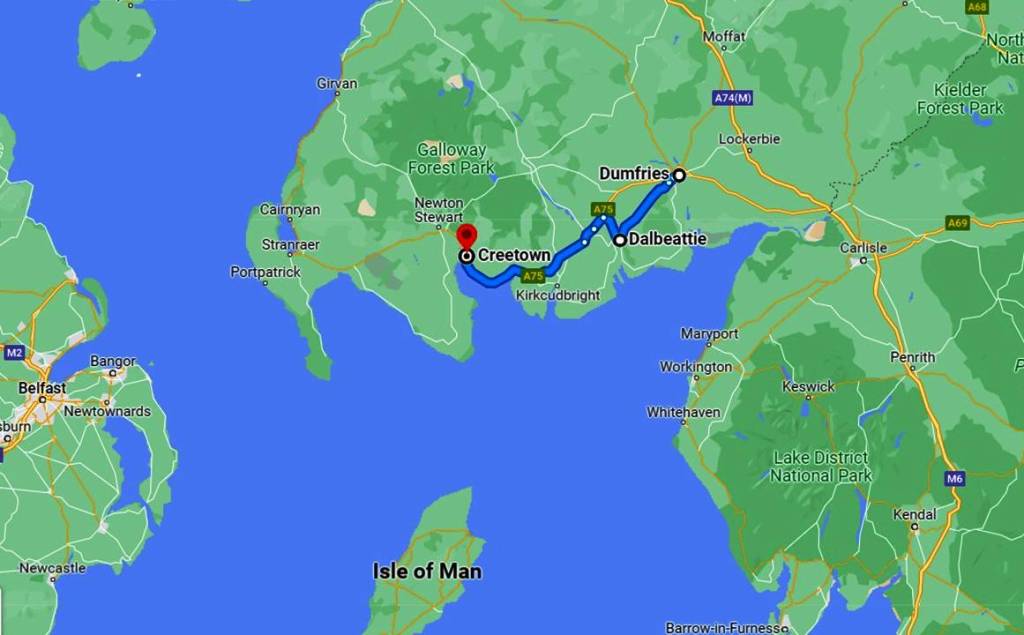 Now he continues by train to Dumfries – very close to his destination of Dalbeattie.