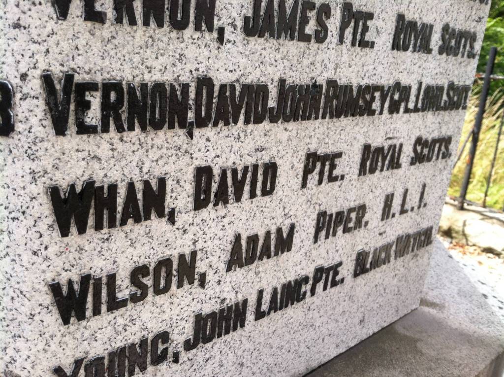 One final note if you’ve read to this point – James mentions his brother David. This David Whan who stays in Scotland would go on to have quite a few children. One of them is a son, David Muir Whan born in 1899. I stumbled upon a World War I memorial right in the middle of Creetown and there saw David M Whan was mentioned because he was killed in action in Flanders during the war.