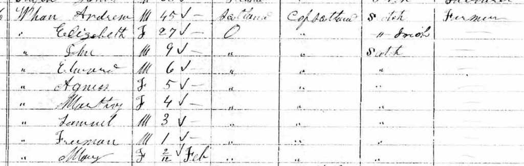 You may have noticed from above, that Canadian Andrew and his wife, Elizabeth in 1871 have seven children! And that won’t be all. Total is probably 14 children. I say “about” because sometimes ancestry trees and records aren’t accurate. Suffice it to say, there are potentially lots of Canadian Whan cousins. I also found an obituary for Andrew that said he came to Canada from Australia. I am a little skeptical of this because in one of the letters (not transcribed in this post) Samuel goes into a lot of details to describe the farm, animals and planting seasons to Andrew. The tone sounded like Andrew had never been to Australia so not sure. Plus what we have learned about the arduous journey by ship, I can’t imagine Andrew gets to Australia and thinks, meh, I am going to give Canada a try… ??