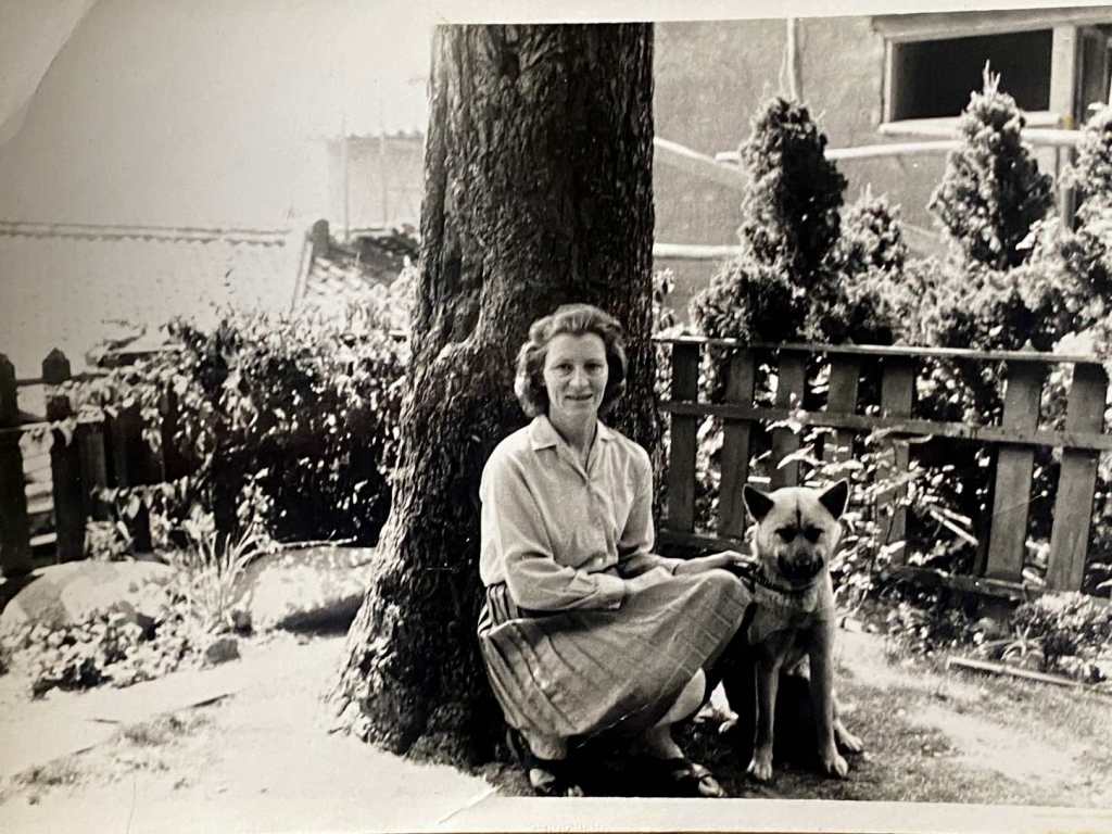 Mary: Here is a picture of the backyard in Kobe. There was another level half the size just below the fence line because the house was built on a slight hill. In Kobe there was also a front yard of about 10 feet that Dad turned into a rock garden with rose bushes.